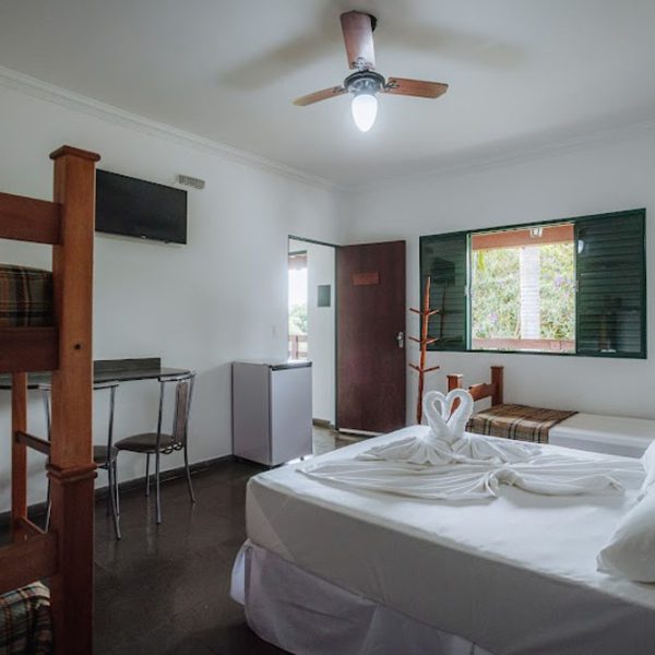 Este espaço proporciona conforto e comodidades essenciais, como banheiro privativo, estacionamento, TV LED, ar condicionado e frigobar. É o lugar perfeito para unir quem você ama!