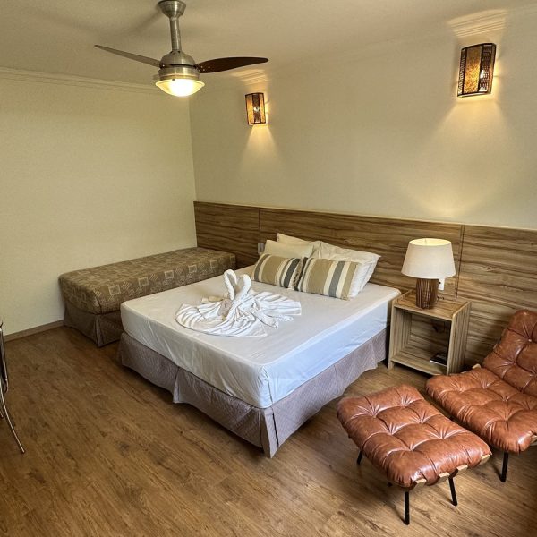 Proporciona uma estadia agradável com banheiro privativo, estacionamento, TV LED, ar condicionado, frigobar e mesa de trabalho. Se você busca uma vista pitoresca, escolha a versão Superior com vista para a lagoa, que conta com uma sacada compartilhada.